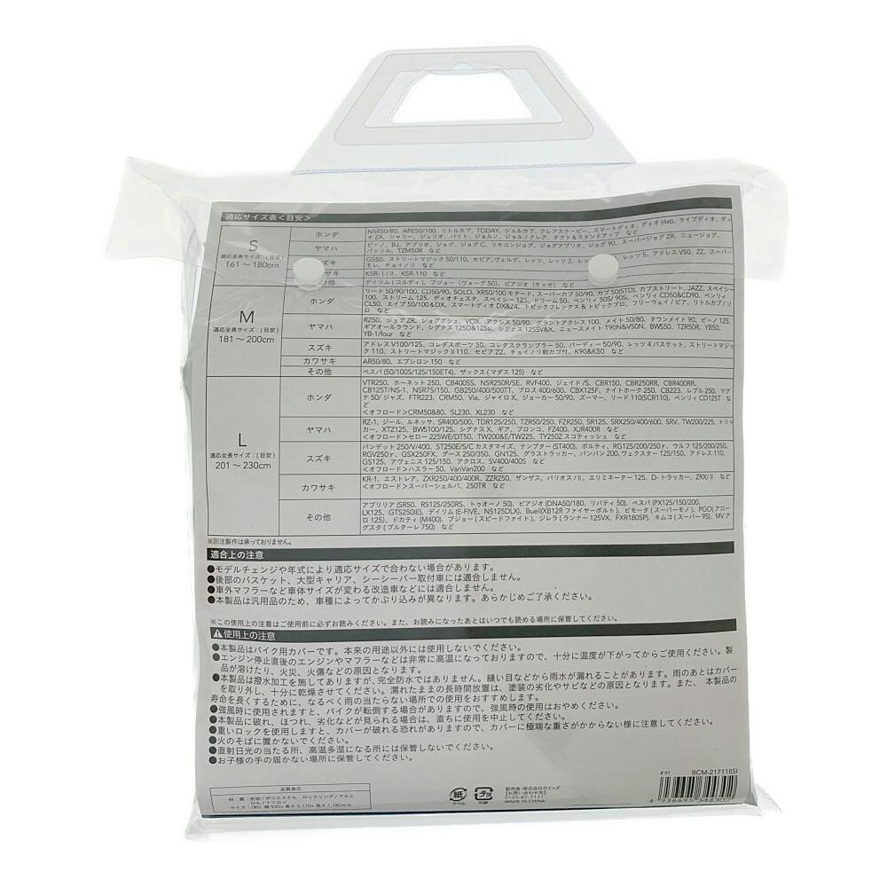 ●盗難防止ロック用リング付き。●バイクカバーM ●撥水加工 ●紫外線カット ●鳥糞害ガード