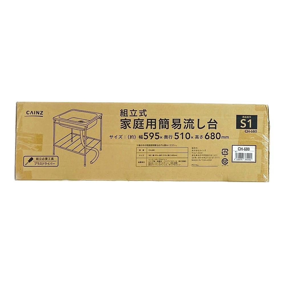 シンク×1、パイプ×2、パイプ脚×2、排水ホース×1、物置台×1、ネジ×8、排水パーツ×1セット