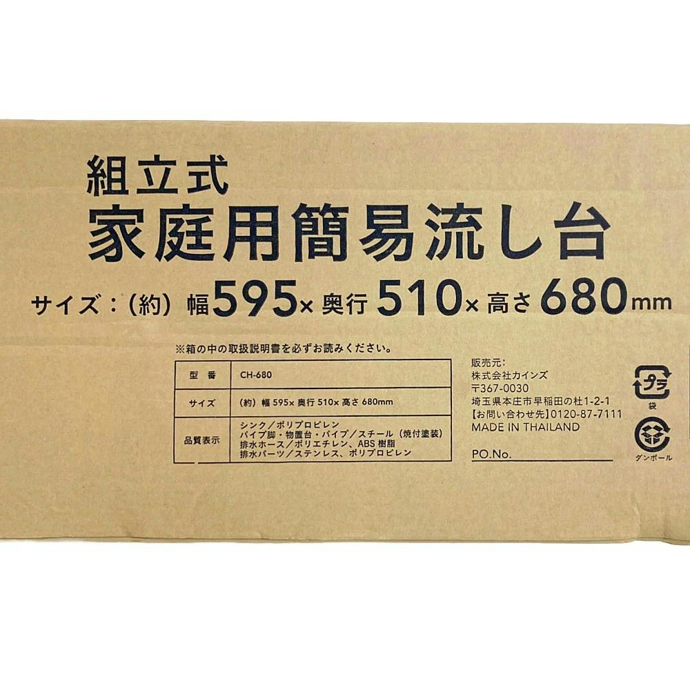 ●シンク/ポリプロピレン ●パイプ脚、物置台、パイプ/スチール ●排水ホース/ポリエチレン、ABS樹脂 ●排水パーツ/ステンレス、ポリプロピレン