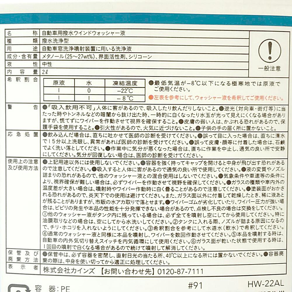 メタノール(25~27wt%)、界面活性剤、シリコーン