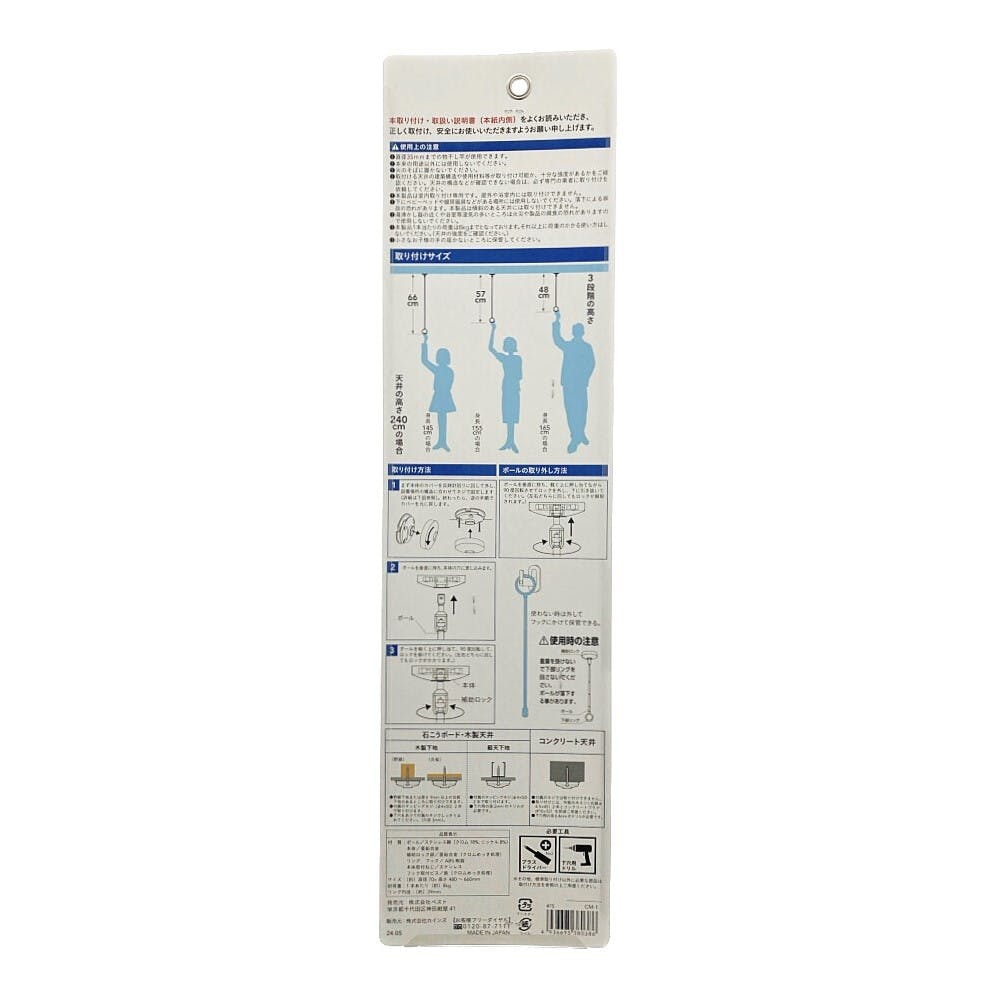 ●直径35mmまでの物干し竿が使用できます。●本来の用途以外には使用しないでください。●火のそばに置かないでください。●取り付ける天井の建築構造や使用材料等が取り付け可能か、十分な強度があるかをご確認ください。