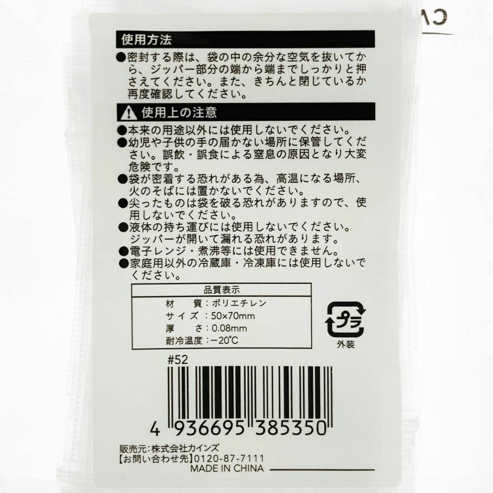 紛失しやすい小物の保管に。丈夫な厚口タイプ。