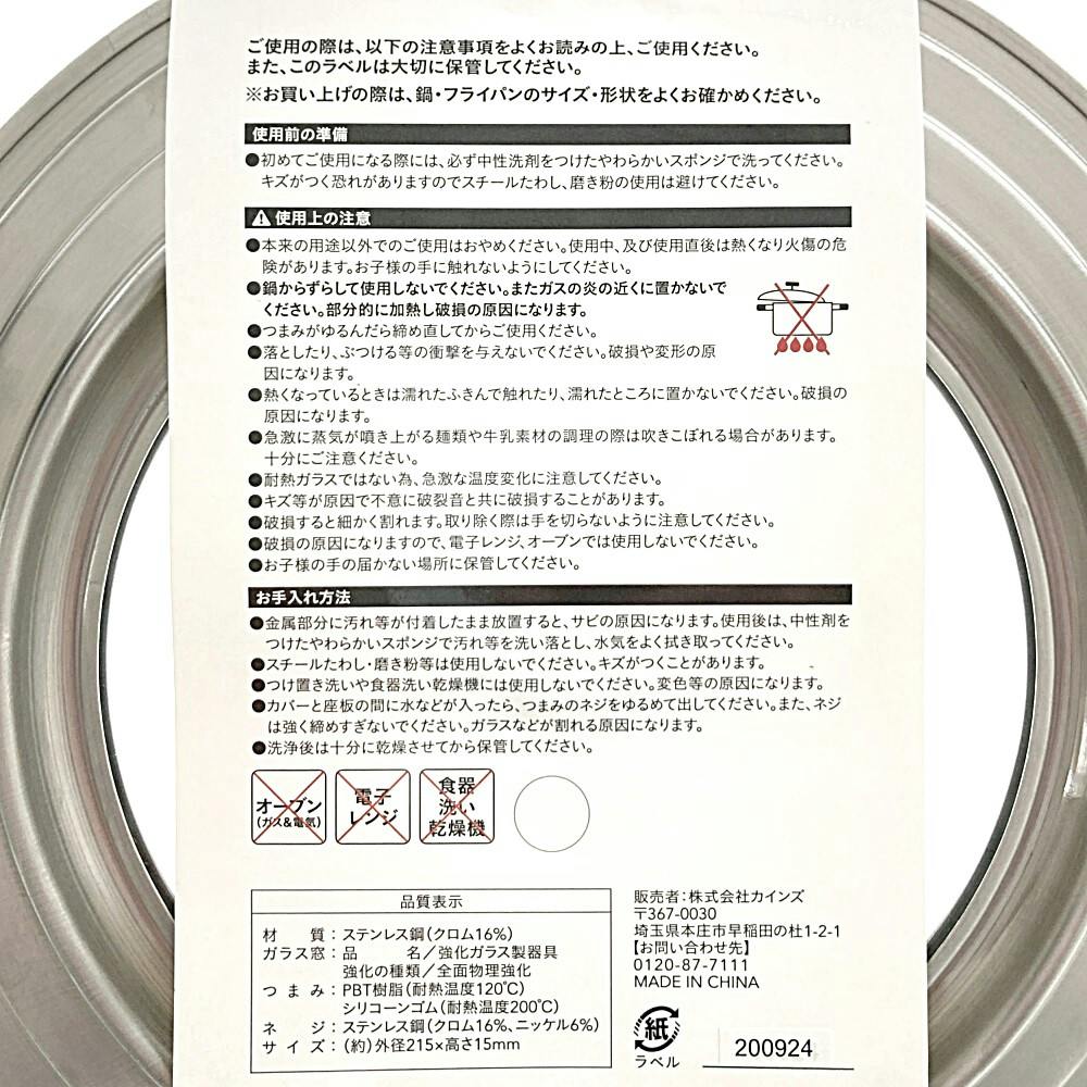 ●使用可能なフライパンサイズ:16cm、18cm、20cm ●サイズ:外径215mm×高さ15mm