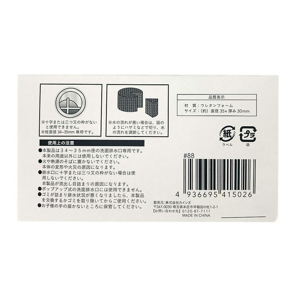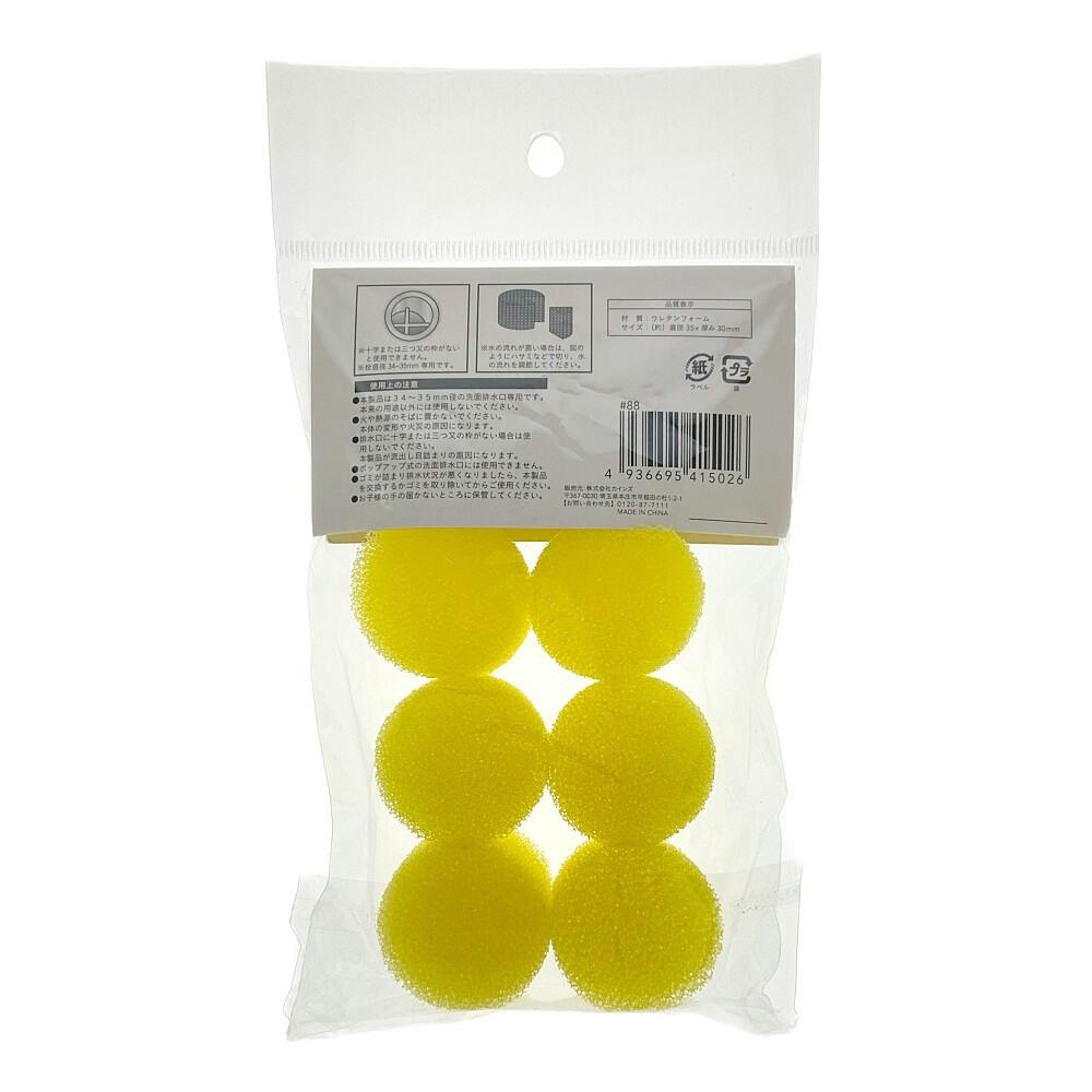 洗面排水口用スポンジ 6個入 SHS-3530GY