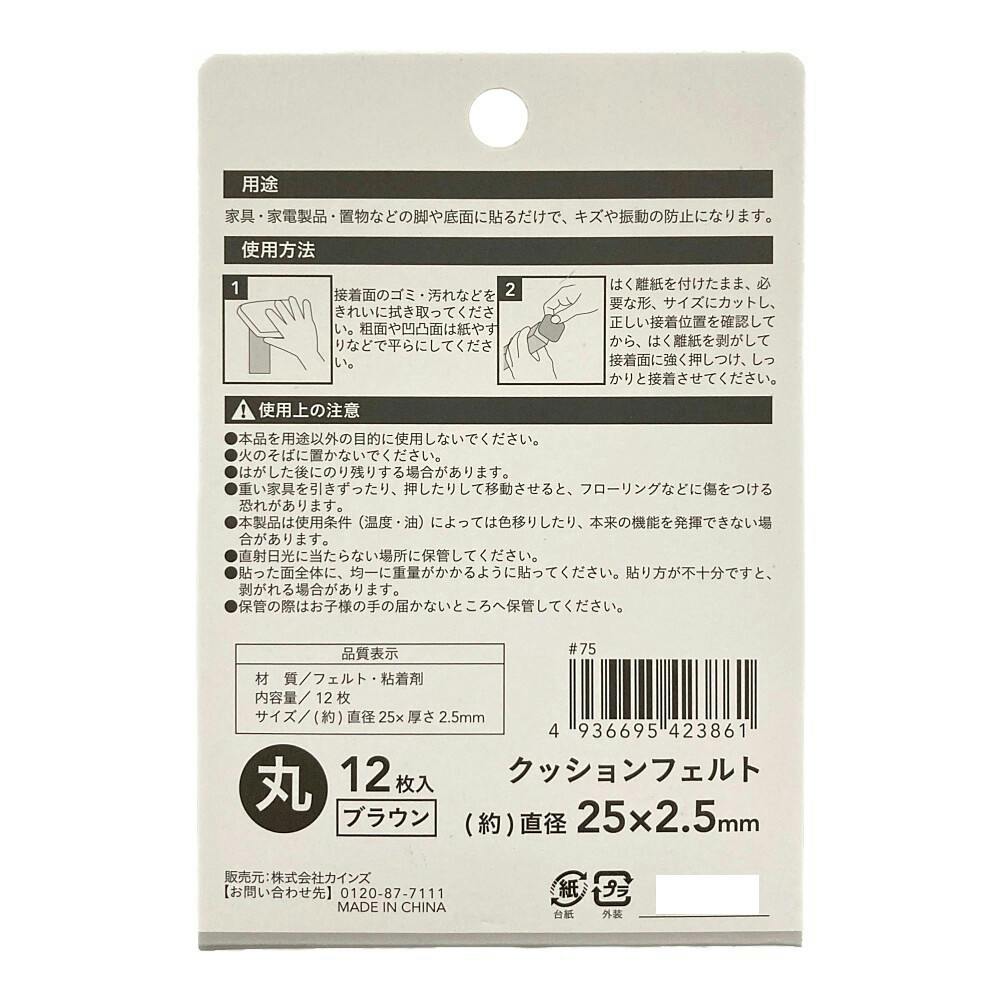 カインズ 貼るだけ簡単 クッションフェルト ブラウン 25丸・12入