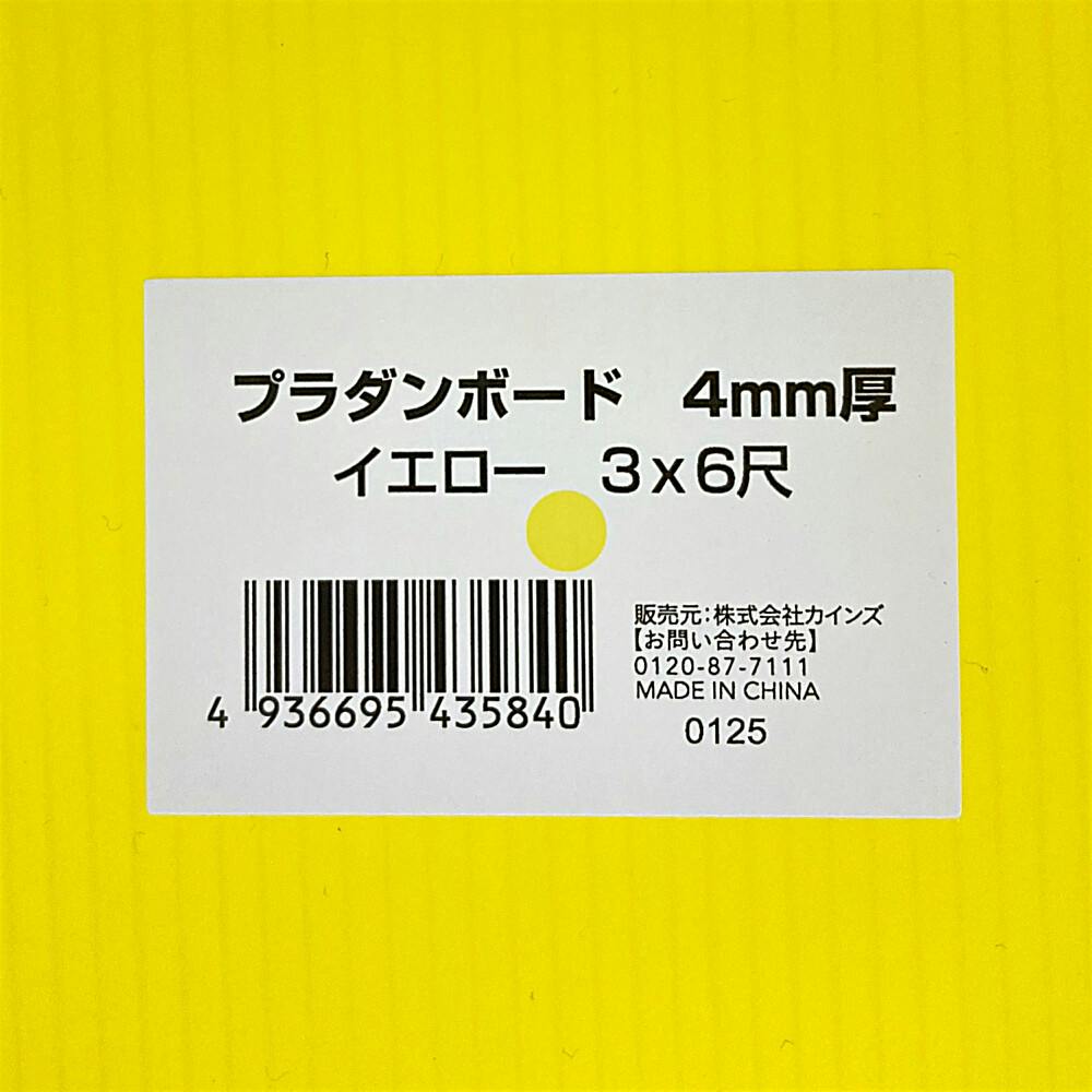 プラダンボード 4mm厚 3×6尺(91cm×182cm) イエロー【SU】