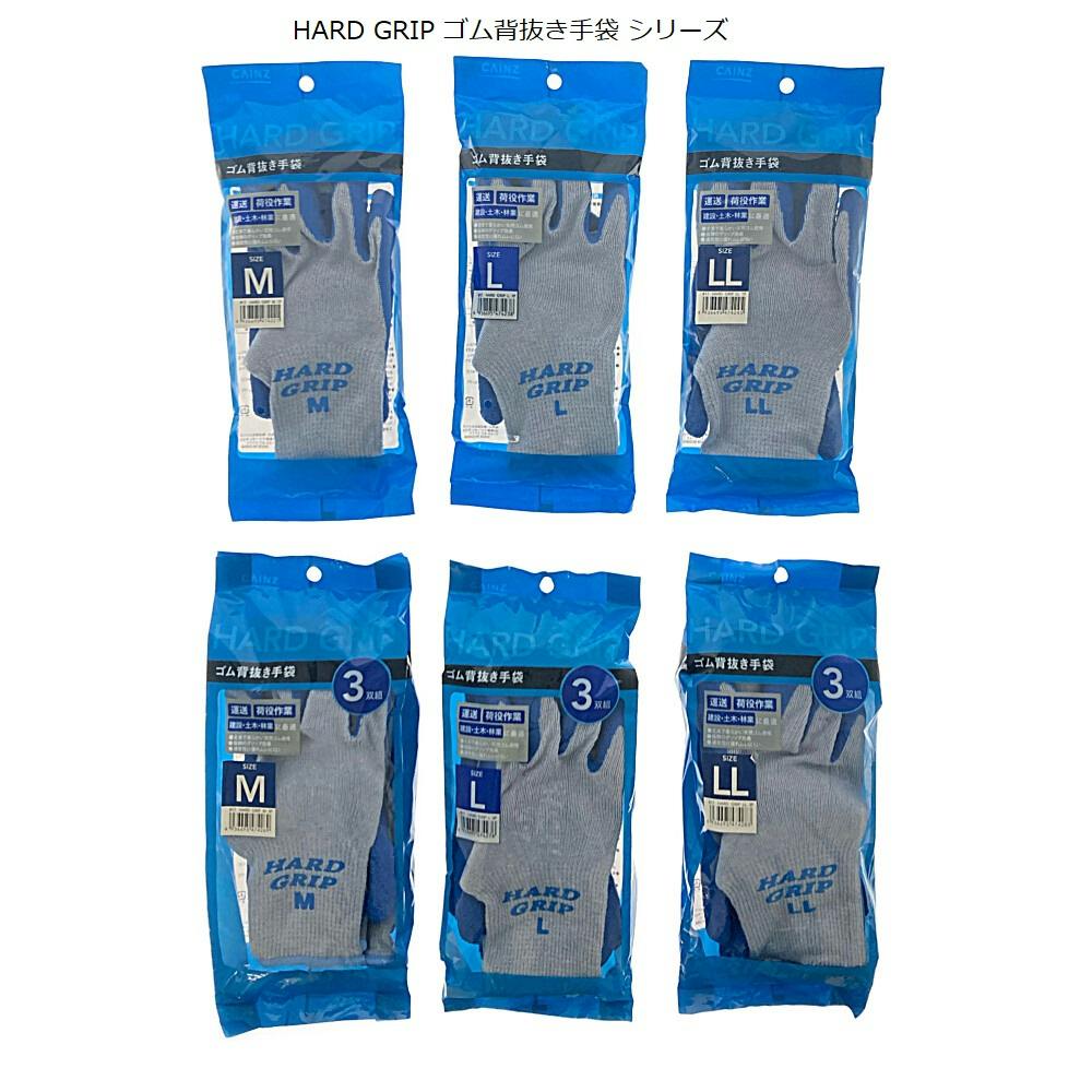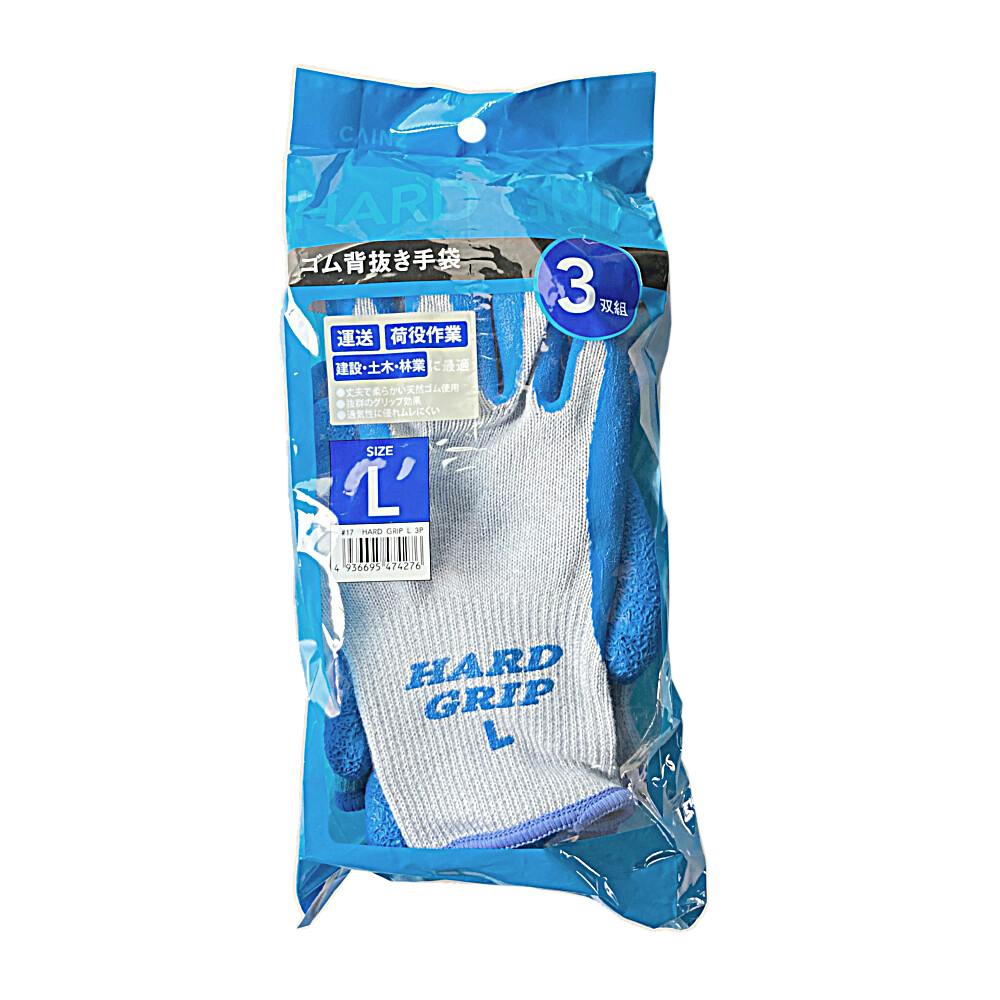 HARD GRIP ゴム背抜き手袋 3双組 L