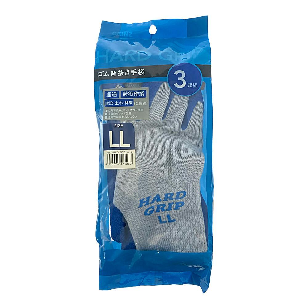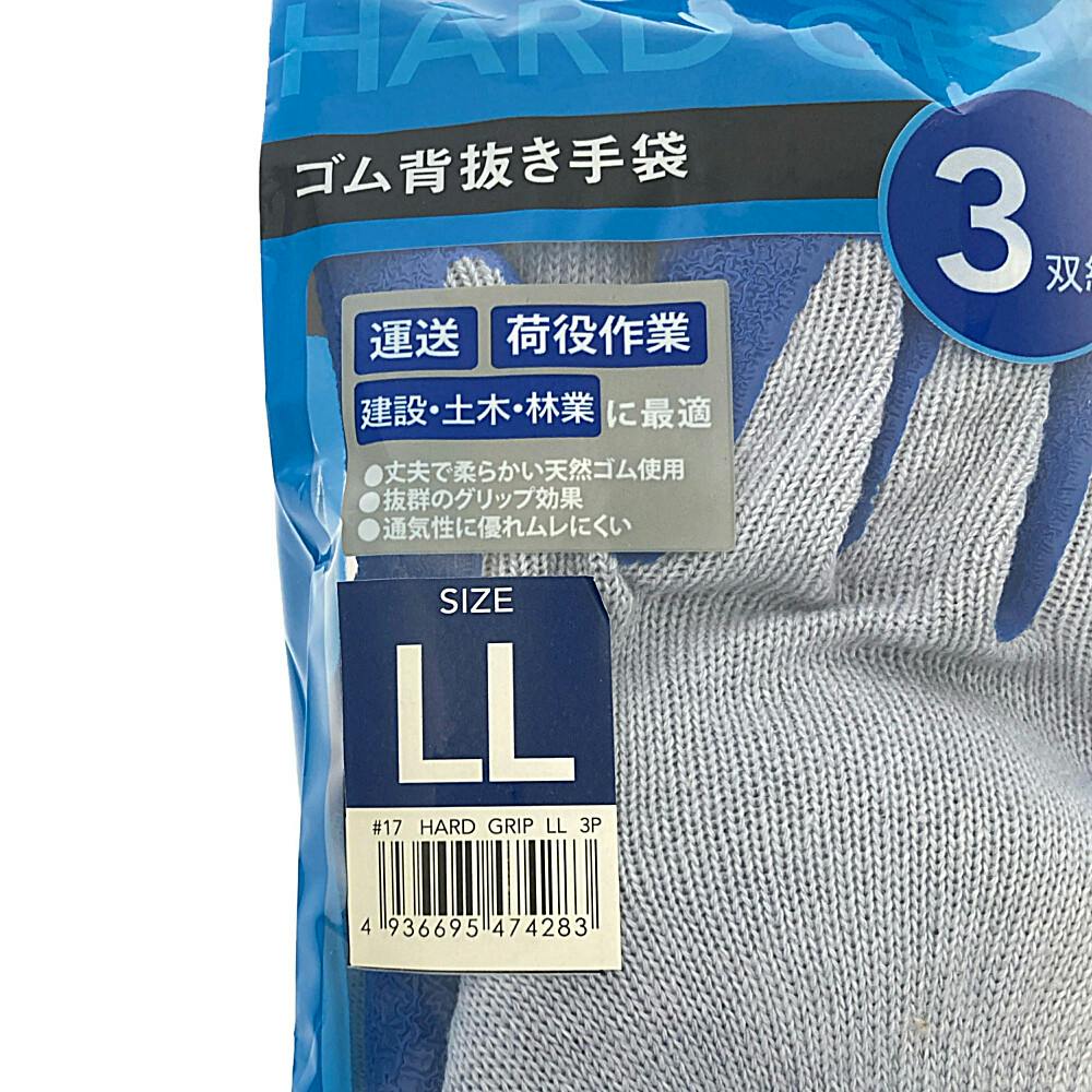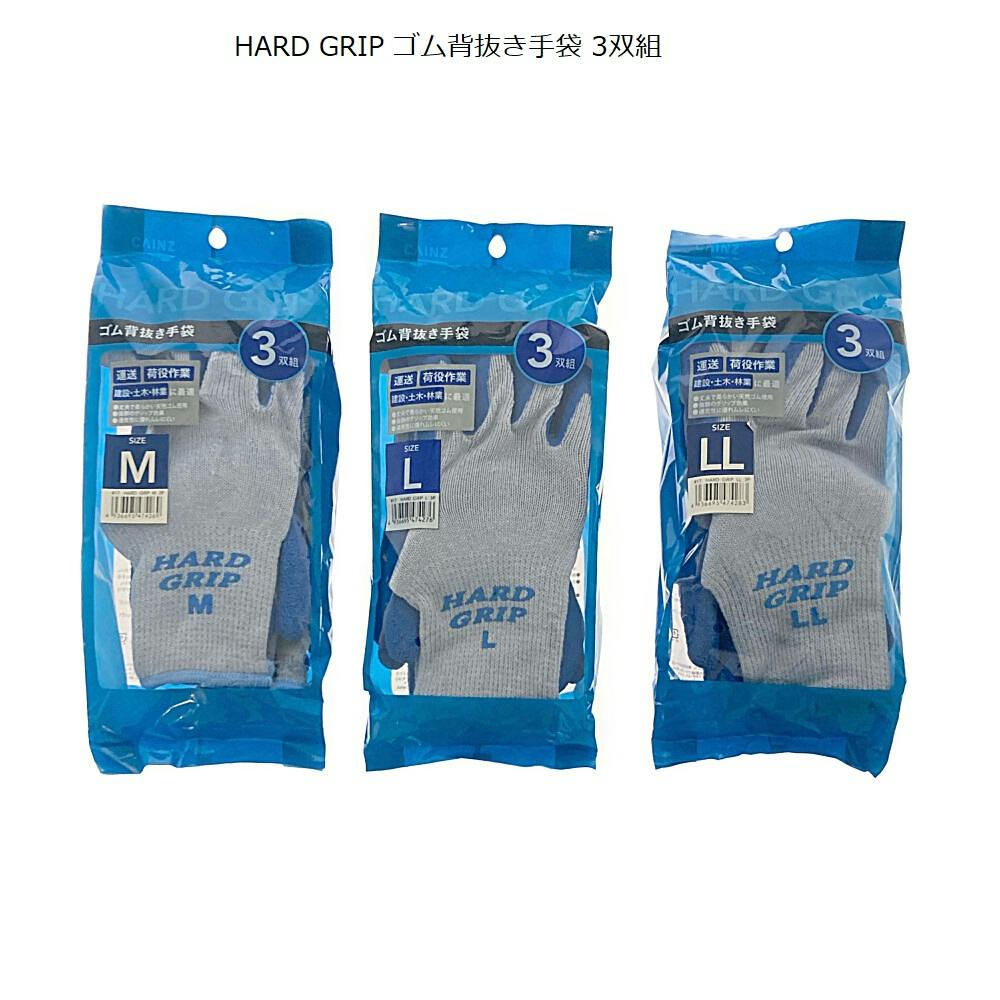 HARD GRIP ゴム背抜き手袋 3双組 LL