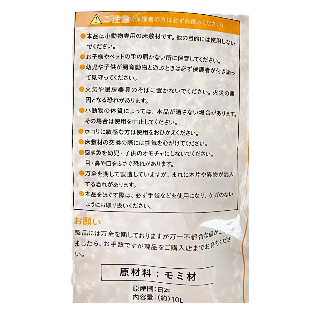 ●本製品は小動物の床敷材です。他の目的には使用しないでください。●お子様やペットの手の届かない所に保管してください。●幼児や子供が飼育動物と遊ぶときは必ず保護者が付き添ってください。等