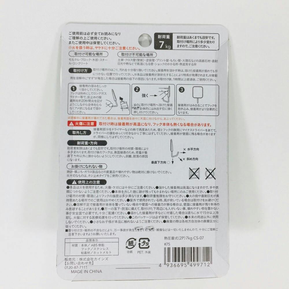●本体/ABS樹脂 ●フック/ステンレス ●粘着剤/ホットメルト