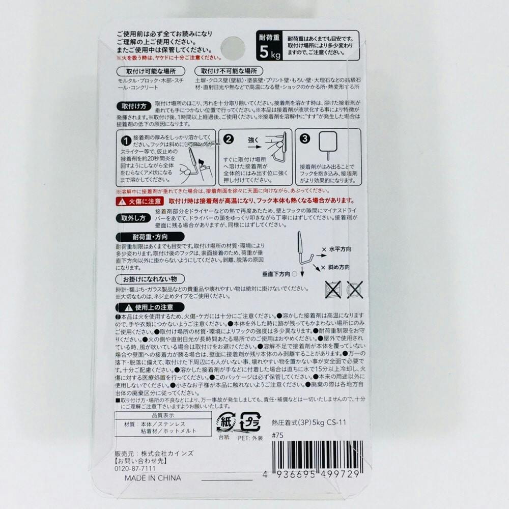 ●熱圧着式 ステンレスフック●コンクリートなどにも取り付けできる