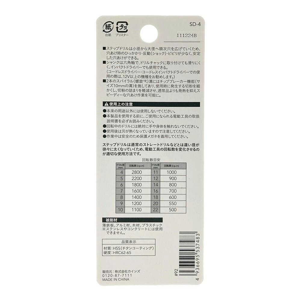 カインズ ステップドリル 10段 4-22mm SD-4