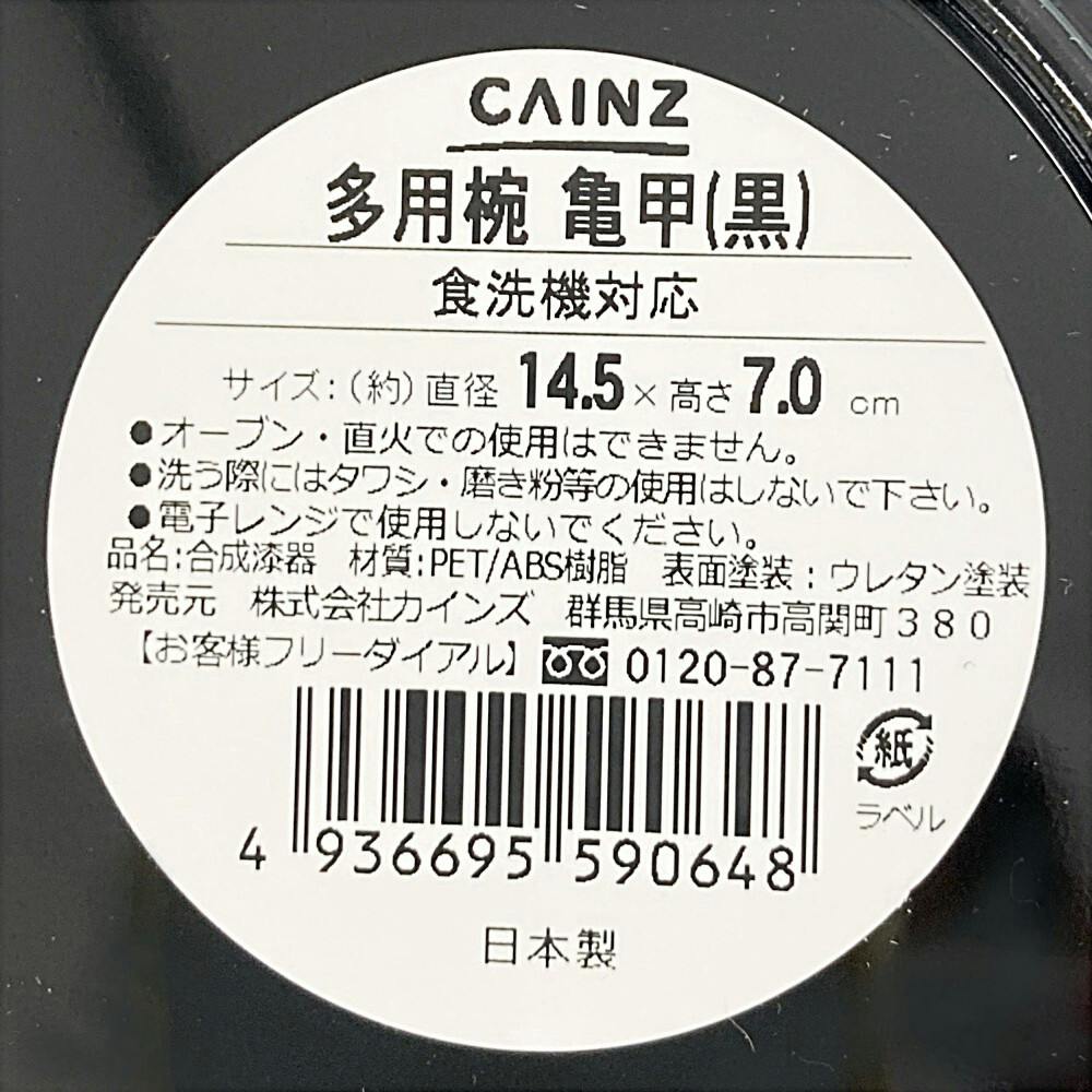 食洗機で洗える 多用椀 亀甲(黒)
