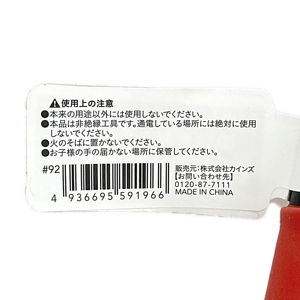 ●本来の用途以外には使用しないでください。●本品は非絶縁工具です。通電している場所には絶対に使用しないでください。●火のそばに置かないでください。●お子様の手の届かない場所に保管してください。