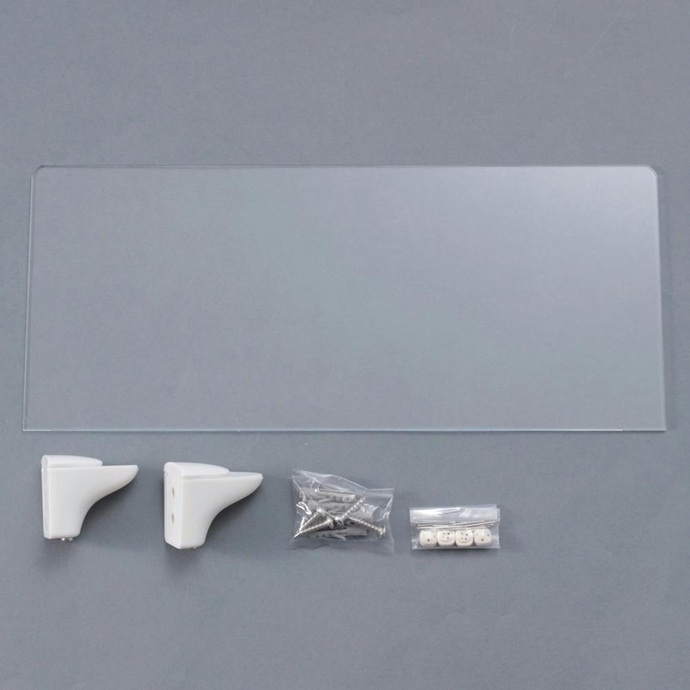 アクリル板×1、棚受けブラケット(固定用ビス付き)×2、ピン台座×4、石膏釘×16以上、取り付け用ビス×4、アンカープラグ×4