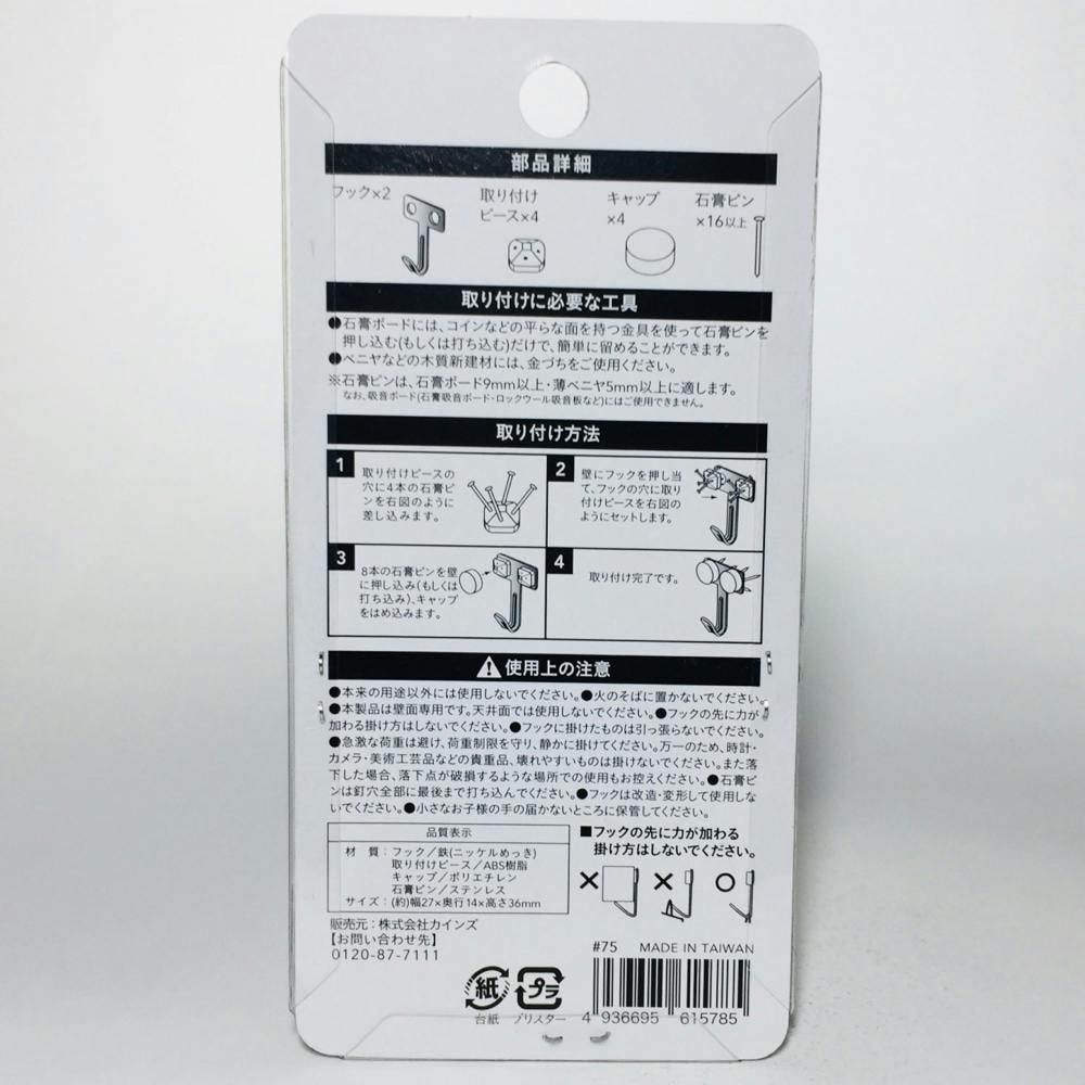 カインズ 石膏ボード用フック 丸キャップ ダブル 2個入