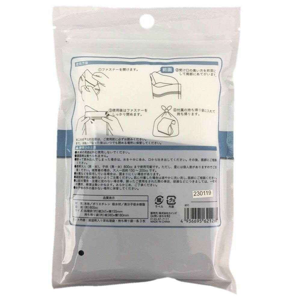 凝固剤入り尿処理袋×3、持ち帰り袋×3