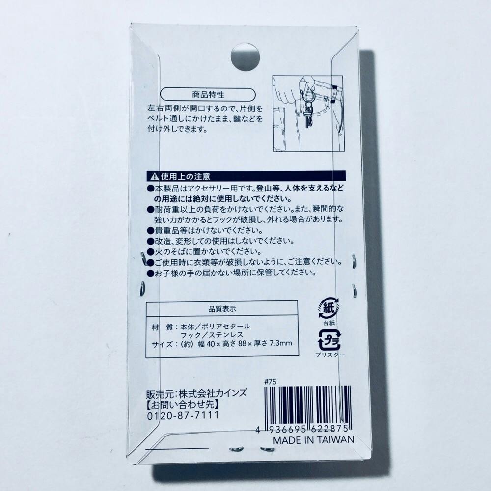 ●S型カラビナ●左右両端が開口するので、片側をベルト通しにかけたまま、鍵などを付け外し出来ます。