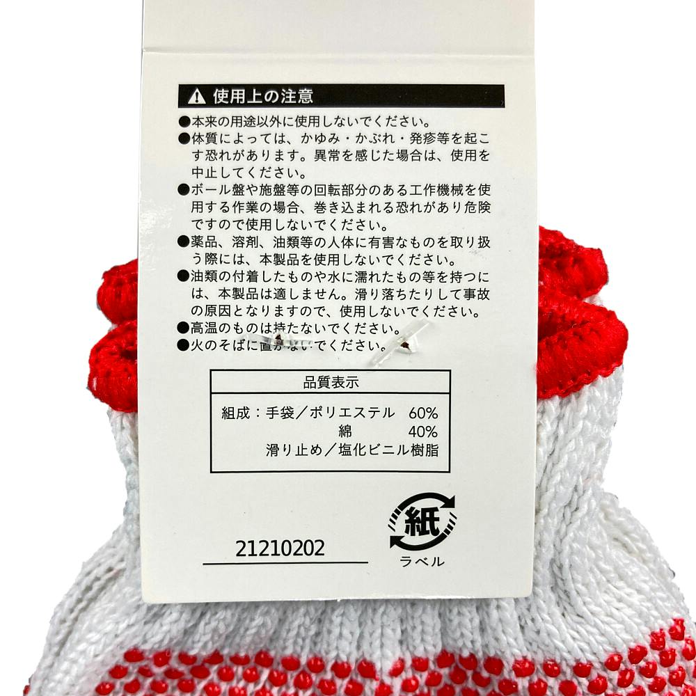 ●手袋/ポリエステル:60%、綿:40% ●すべり止め/塩化ビニル樹脂