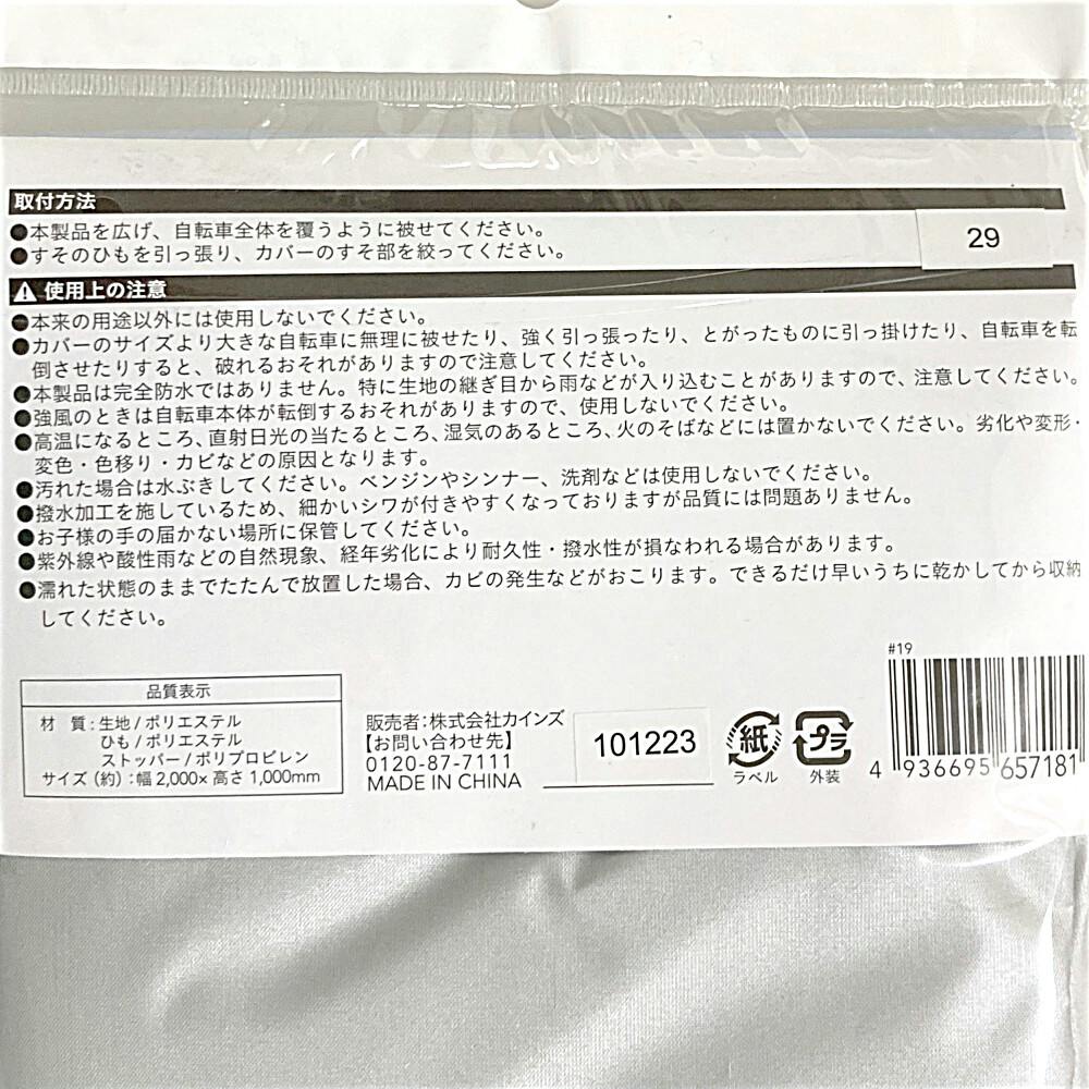 カインズ やぶれにくい自転車カバー 22~27型 200×100cm