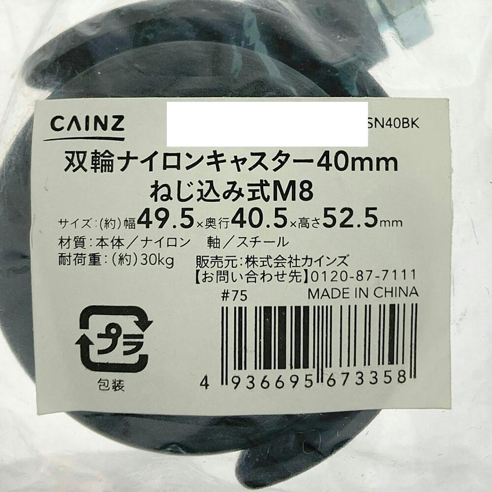 双輪ナイロンキャスター 40mm ねじ込 M8 SN40BK
