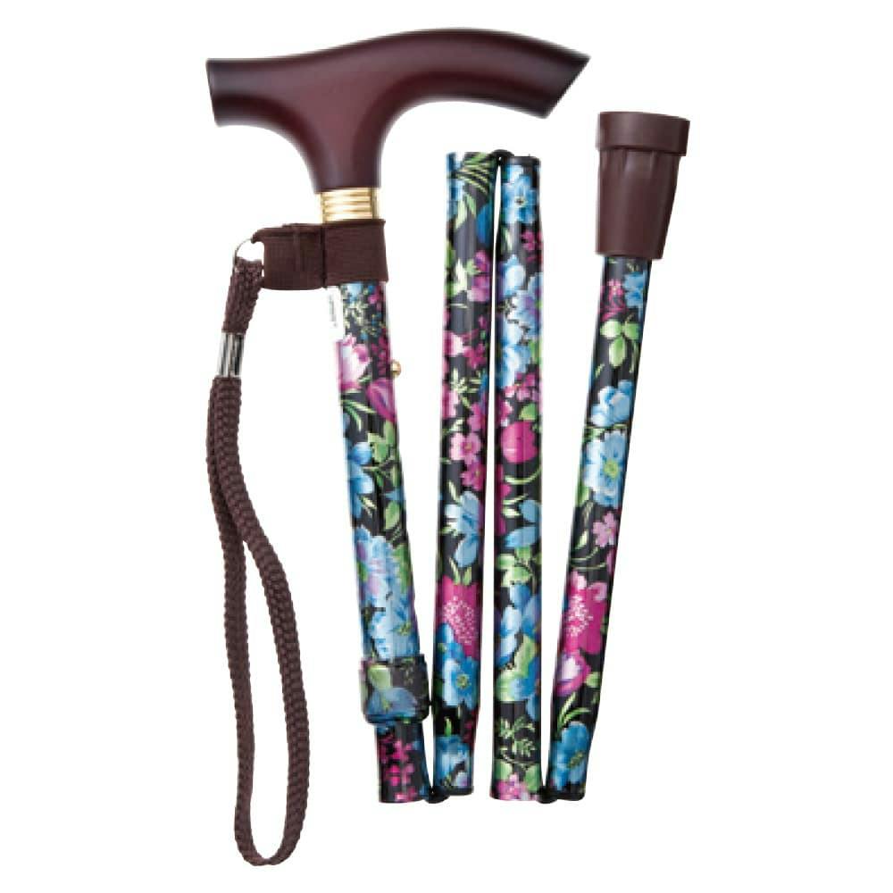 CAINZ 花柄折畳式ステッキ ブラック