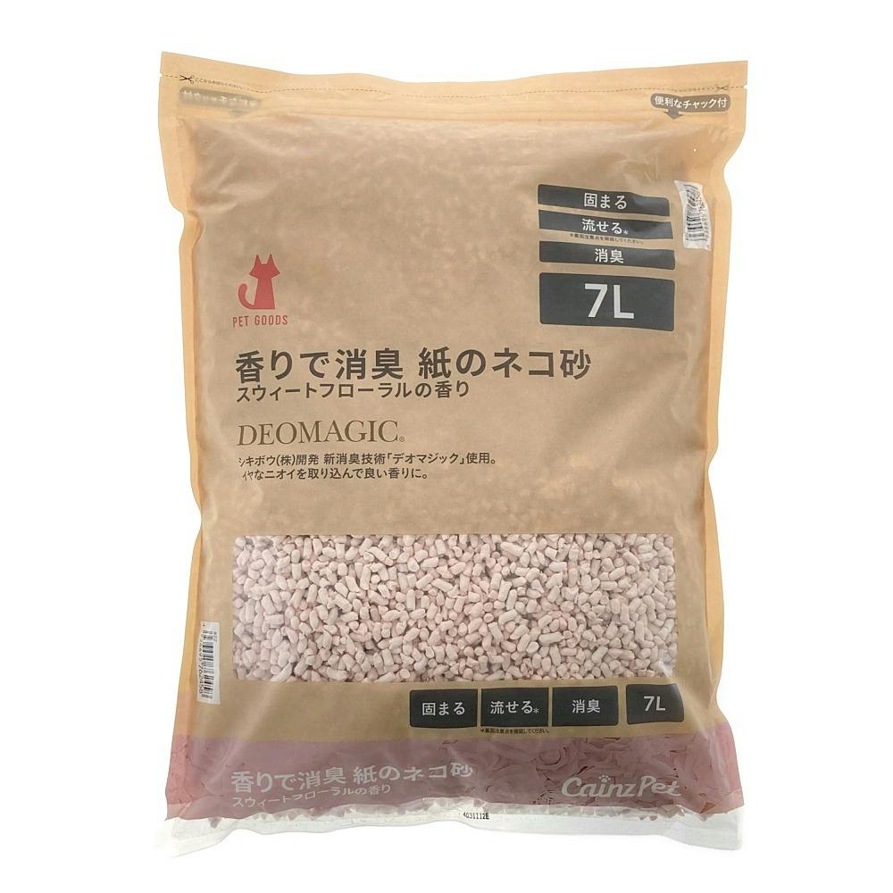 猫砂 デオマジック 香りで消臭 紙のネコ砂 スウィートフローラルの香り 7L 大容量 飛び散り防止 固まる 燃やせる