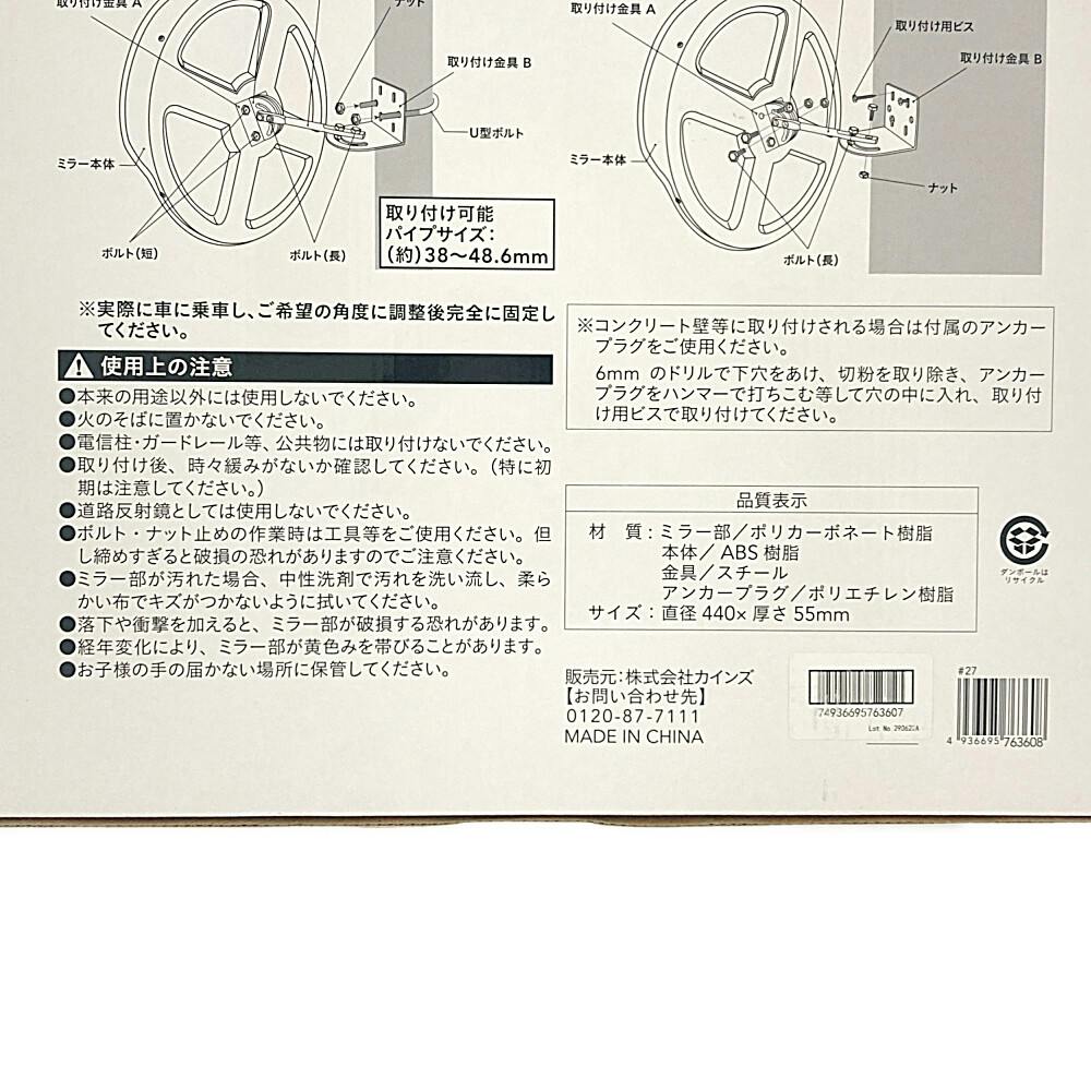 ミラー部/ポリカーボネート、本体/ABS樹脂、金具/スチール、アンカープラグ/ポリエチレン樹脂