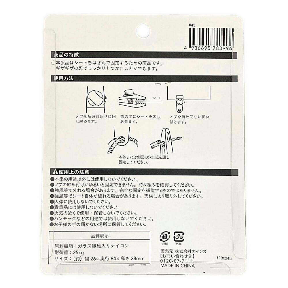 本製品はシートをはさんで固定するための商品です。ギザギザの刃でしっかりとつかむことができます。