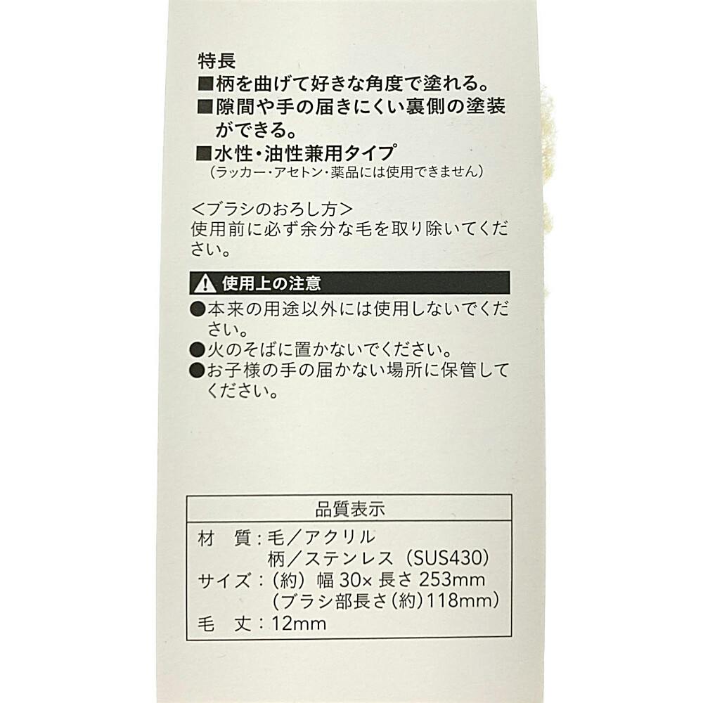 ●柄を曲げて好きな角度で塗れる。●隙間や手の届きにくい裏側の塗装ができる。●水性・油性兼用タイプ(ラッカー・アセトン・薬品には使用できません)