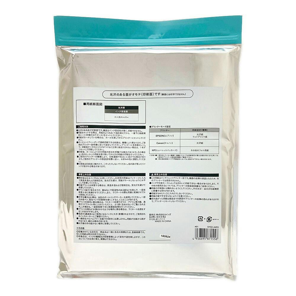 ●光沢●保存に便利なファスナー付き袋●坪量:186g/平方メートル●染料インク対応●顔料インク対応