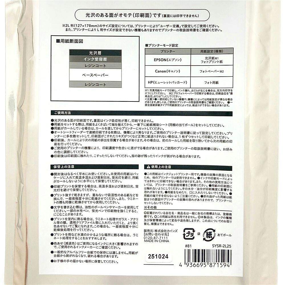 カインズ 写真用紙 スーパー 2L判 25枚