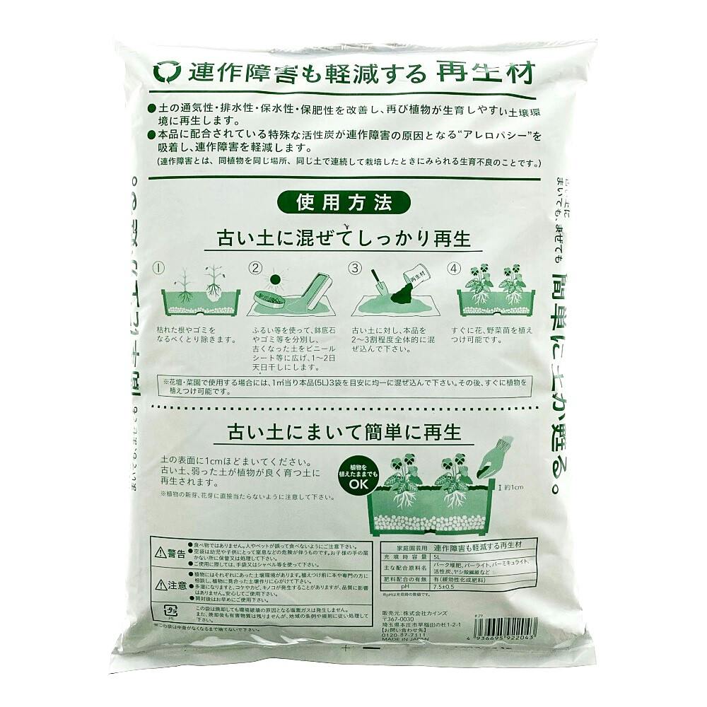 ●土の通気性・排水性・保水性・保肥性を改善し、再び植物が生育しやすい土壌環境に再生します。●本品に配合されている特殊な活性炭が連作障害の原因となるアレロパシーを吸着し、連作障害を軽減します。