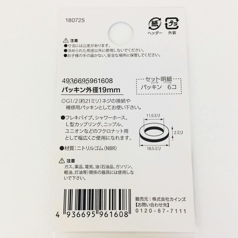 パッキン 外径19mm 6個入
