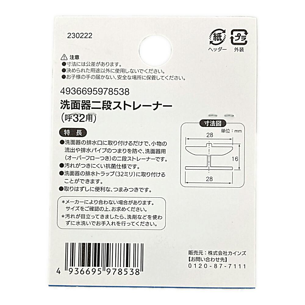 ●洗面器の排水口に取り付けるだけで、小物の流出や排水パイプのつまりを防ぐ、洗面器用(オーバーフローつき)の二段ストレーナーです ●汚れがつきにくい抗菌仕様です