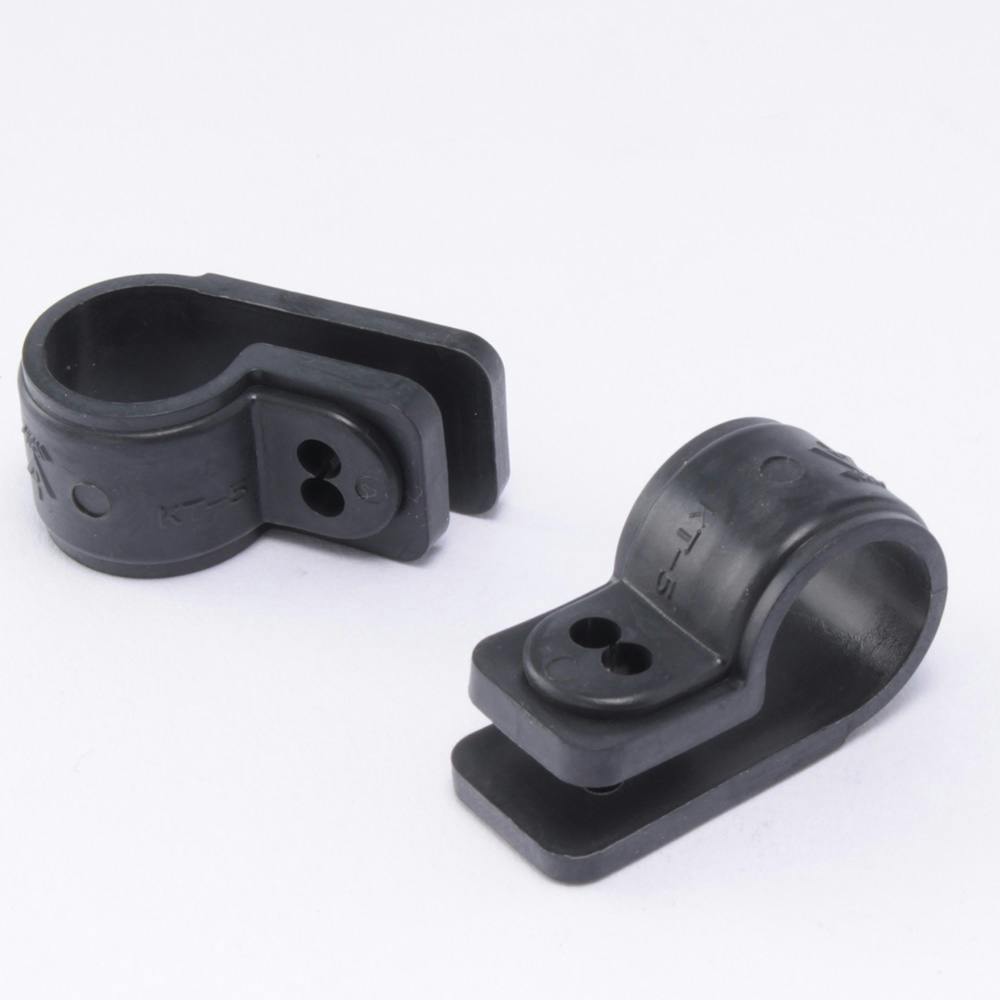 ビス1本で固定します。穴が上下2つずつ空いていますが、管のサイズに合わせてズラして固定してください。