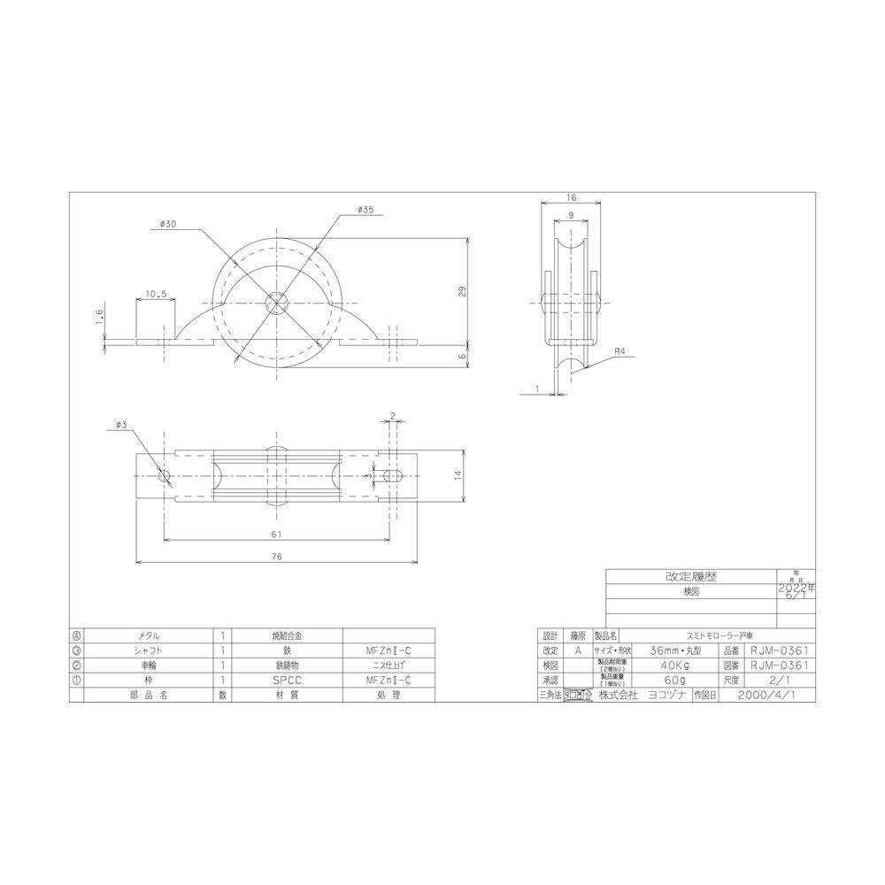 ヨコヅナ 板枠戸車 丸 36mm 2P