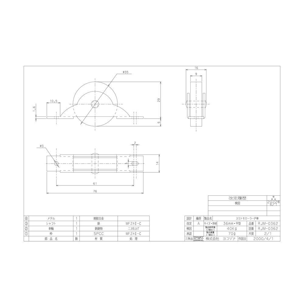 ヨコヅナ 板枠戸車 平 36mm 2P