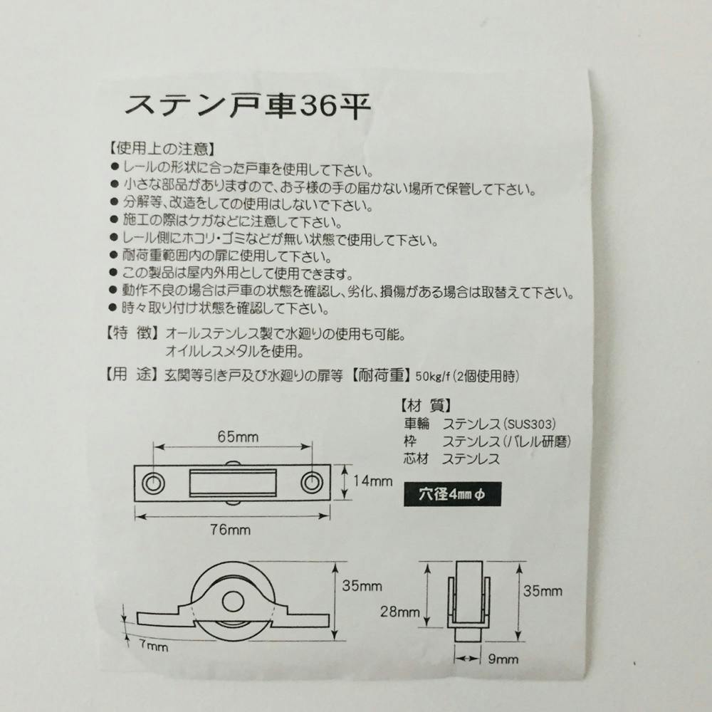 ●レールの形状にあった戸車を使用して下さい。●小さな部品がありますので、お子様の手の届かない場所で保管して下さい。●分解等、改造しての使用はしないで下さい。●施工の際にケガなどに注意して下さい。●耐荷重範囲内の扉に使用して下さい。