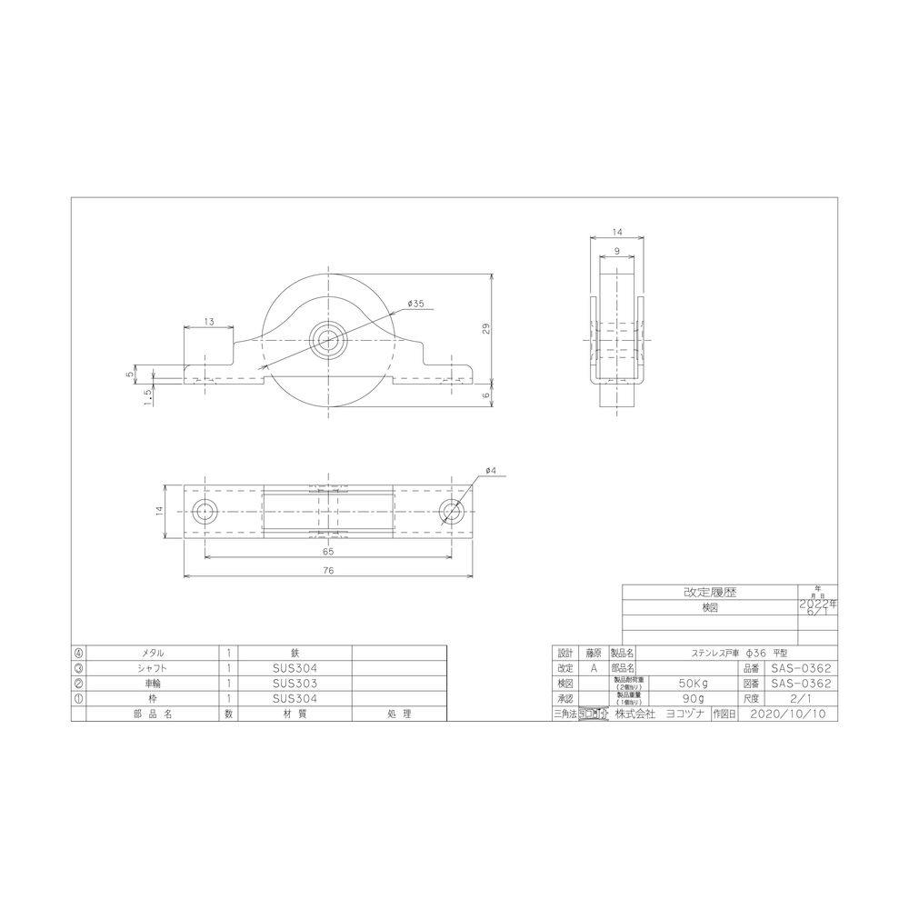 ヨコヅナ ステン戸車 平 36mm 2P