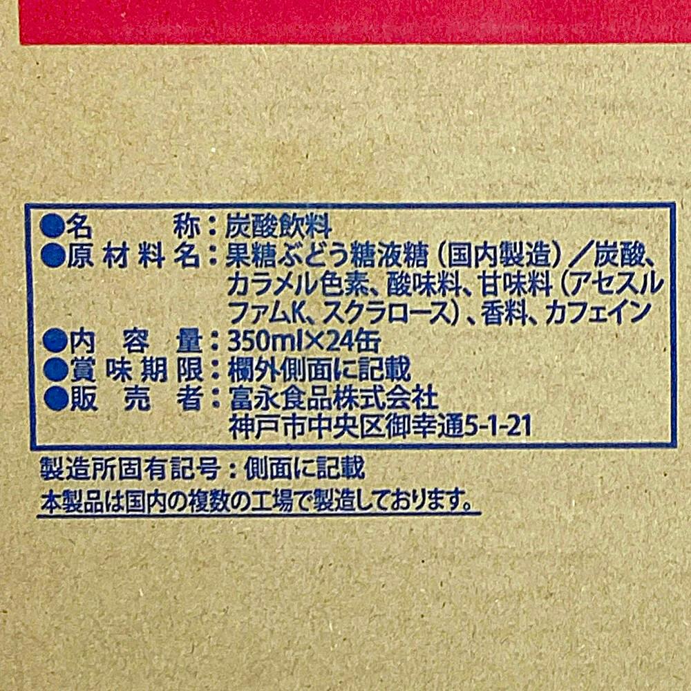 果糖ぶどう糖液糖(国内製造)/炭酸、カラメル色素、酸味料、甘味料(アセスルファムK、スクラロース)、香料、カフェイン