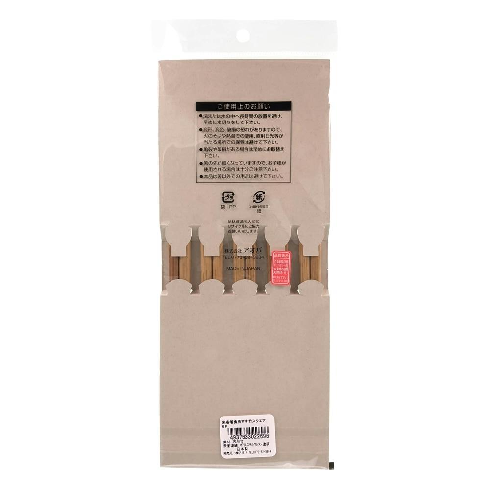 食洗機対応 来客箸 すす竹スクエア 5膳組 22.5cm