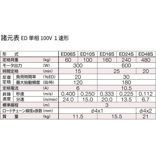 【CAINZ-DASH】キトー 電気チェーンブロック キトーセレクト ED形 定格荷重240kg 揚程3m 単相100V1速形 【選べる定格荷重】 ED24S ED24S【別送品】