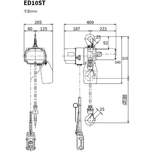 • 【CAINZ-DASH】キトー 電気チェーンブロック キトーセレクト ED形 定格荷重100kg 揚程3m 単相100V2速形 【選べる定格荷重】 ED10ST  ED10ST【別送品】