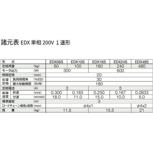【CAINZ-DASH】キトー 電気チェーンブロック EDX形 キトーセレクト 定格荷重240kg 揚程3m 単相200V 1速形【選べる定格荷重】 EDX24S EDX24S【別送品】