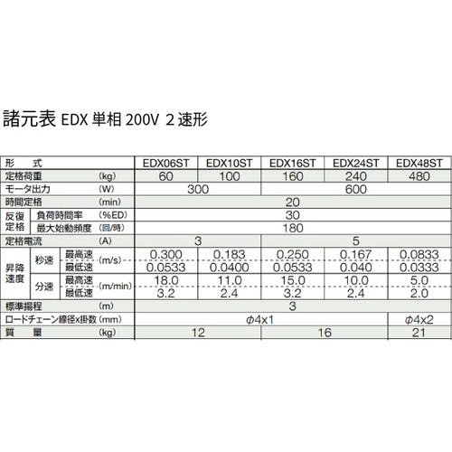 【CAINZ-DASH】キトー 電気チェーンブロック EDX形 キトーセレクト 定格荷重240kg 揚程3m 単相200V 2速形【選べる定格荷重】 EDX24ST EDX24ST【別送品】