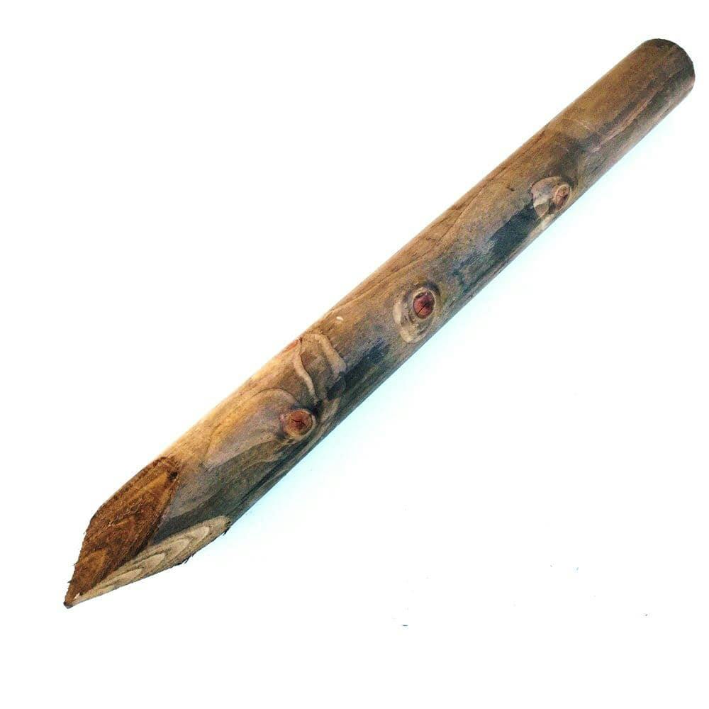 防腐加工(茶)を施し、防腐効果を付加した根杭。