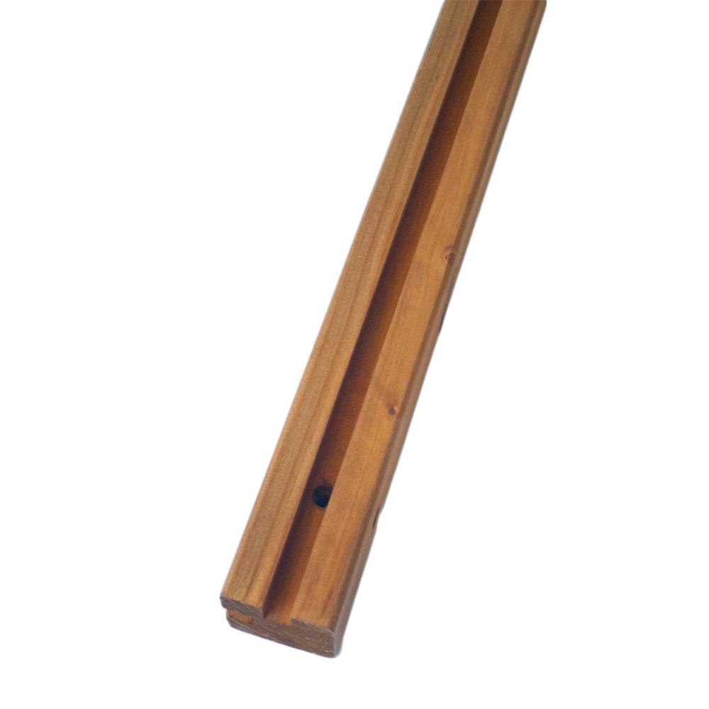 ブラウン色に防腐材処理されたDIYフェンス用の柱(ポスト)。隅の柱用にL溝加工済み。防腐フェンス板等の板材を差し込み使用。