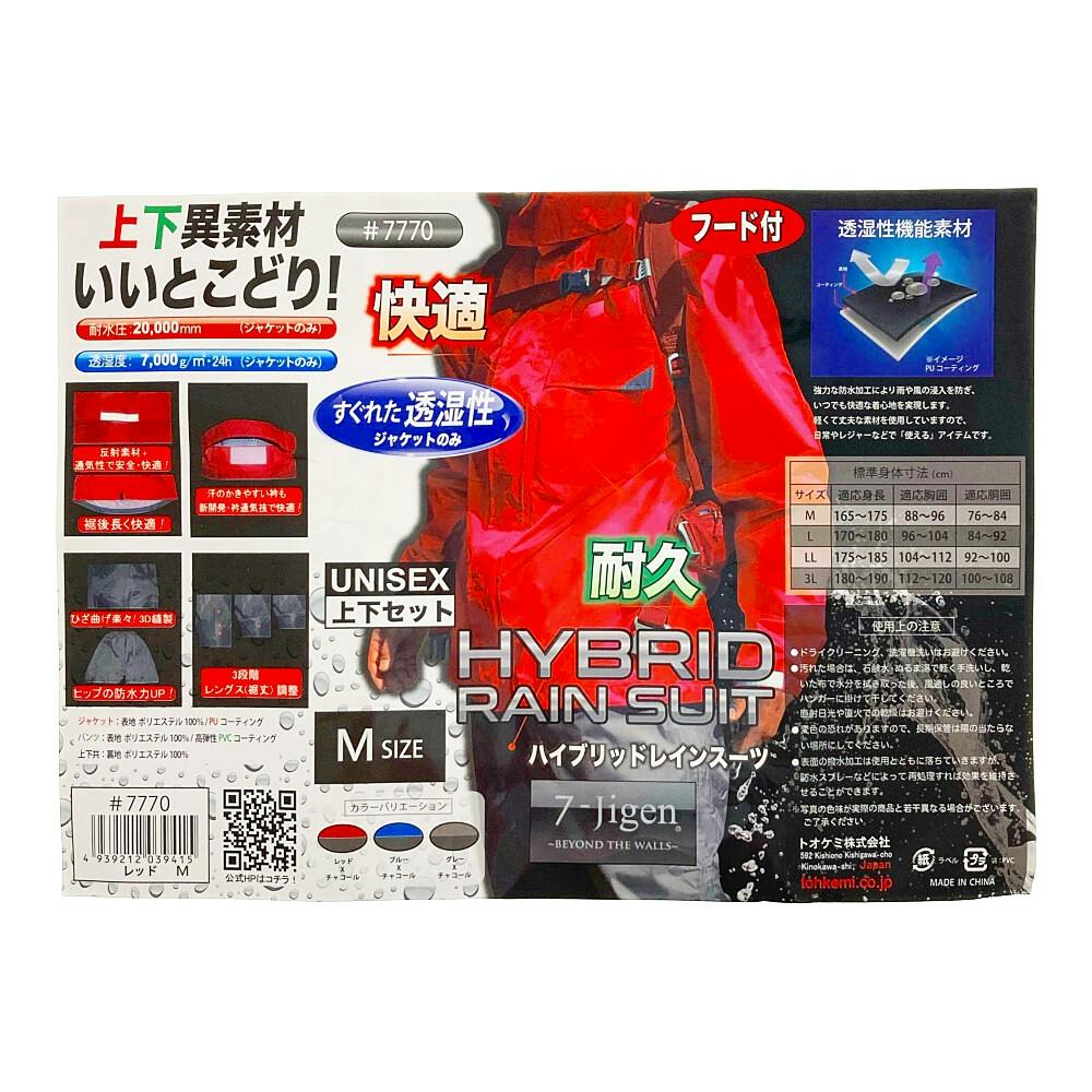 ハイブリッドレインスーツ レッド M