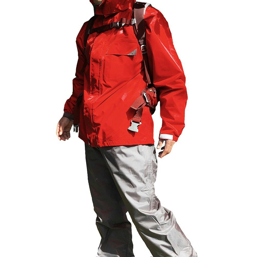 透湿軽量タイプのジャケットに耐久性のパンツを組み合わせたハイブリッドレインスーツです。